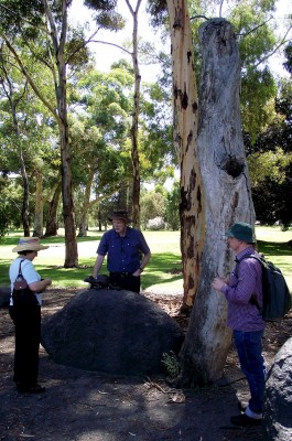 In 2000, after an initiative by local Aboriginal people, academics and church representatives, the present boulders with plaques were established. As they are situated at the Southern edge of the Golf Course, and behind its car park, not many people notice the memorial or are aware of the significance of this site for the Kaurna Community and people related with the Kaurna Language reclamation and revival. In 2013, the University of Adelaide initiated a commemoration of the 175 years arrival of the first two of four German Lutheran missionaries at this place, with strong representation by the Kaurna people.
